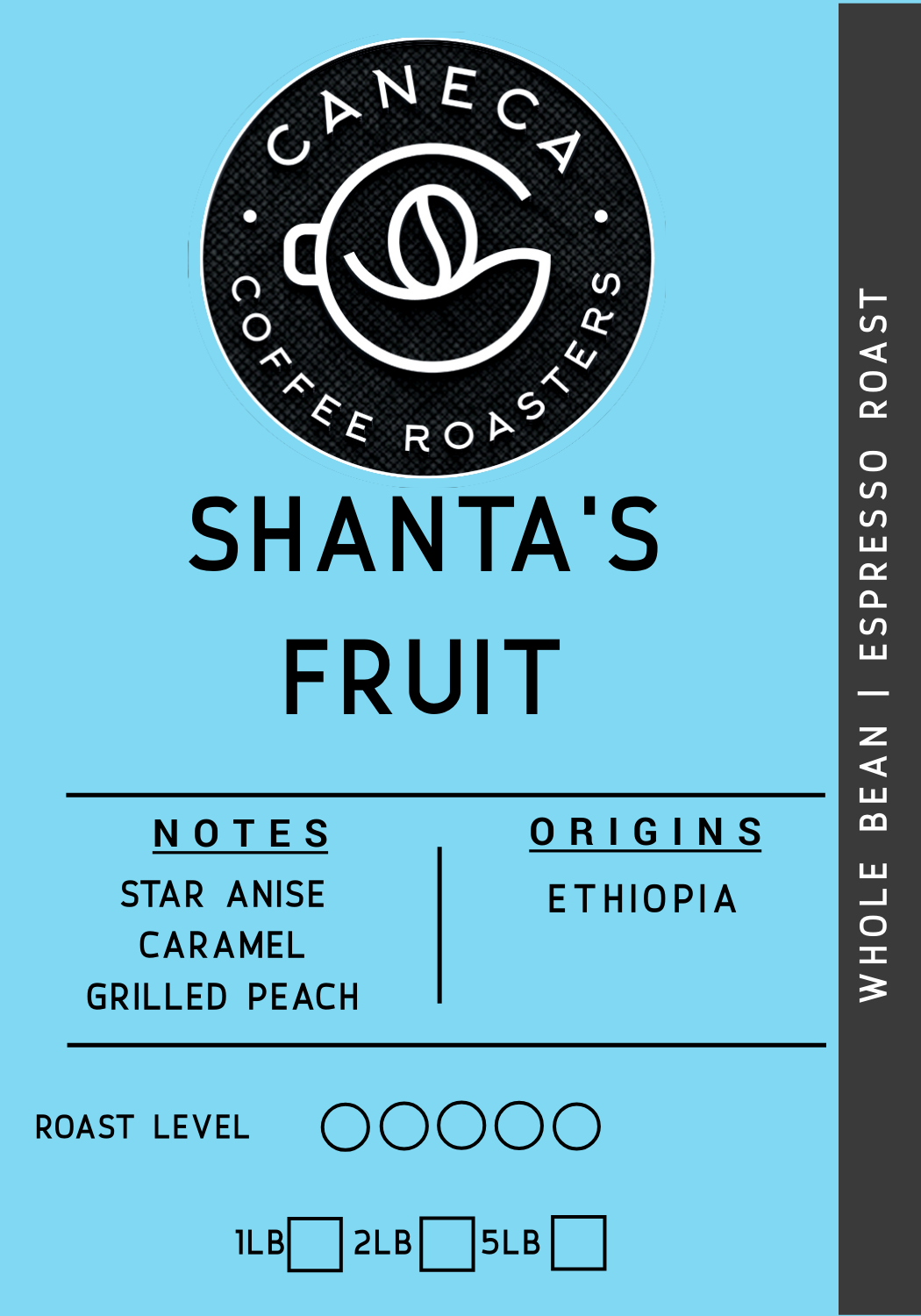 Shanta's Fruit is a versatile Ethiopian coffee known for its vibrant complexity across roast levels. Light to medium roasts reveal bright florality and fruit-forward notes of lavender, boysenberry, Madagascar vanilla, and honey, complemented by a creamy mouthfeel and balanced acidity. When roasted darker, it offers a rich, syrupy profile with pomegranate, mixed berry jam, dark chocolate, cola, and buttery pie crust flavors. Ideal as drip or single-origin espresso, this coffee provides an expressive, refined cup that enhances any blend with its distinctive fruit character.